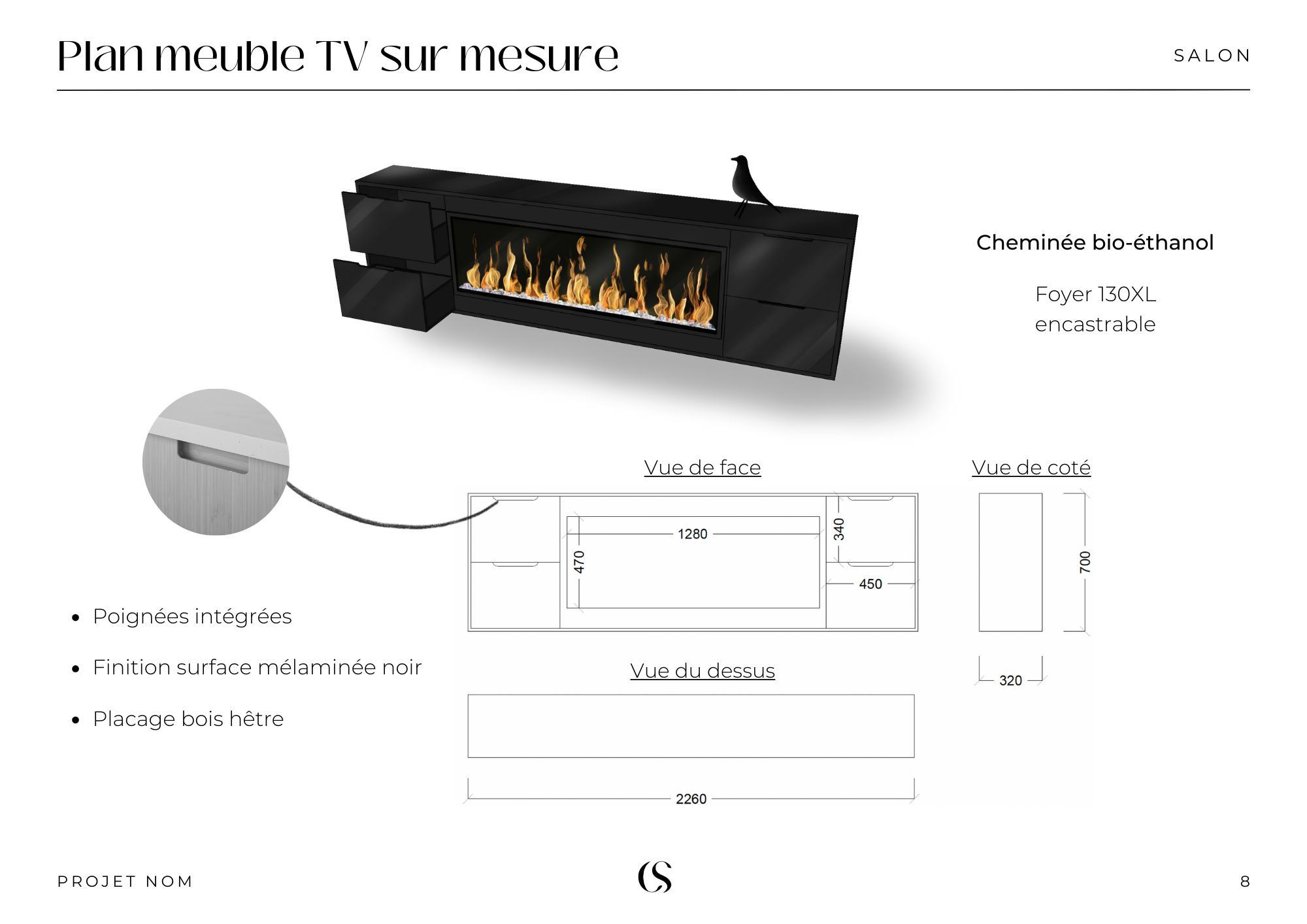 Elle contiendra le listing complet de tous les articles à acheter pour finaliser votre projet (mobiliers, décorations, textiles, luminaires, revêtements muraux ou tout autre élément contribuant à l’esthétique souhaitée) avec leurs prix, références et liens cliquables.